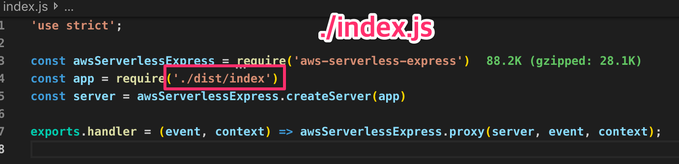 8.루트 폴더에 있는 index.js 파일을 아래와같이 수정한다.(express서버 root 파일로)