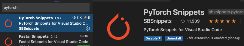 PyTorch Snippets 설치가 완료되면 vscode를 재시작 해준다.