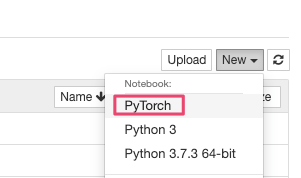 노트북에 new 버튼을 클릭하면 PyTorch가 추가된 것을 확인 할 수 있다.