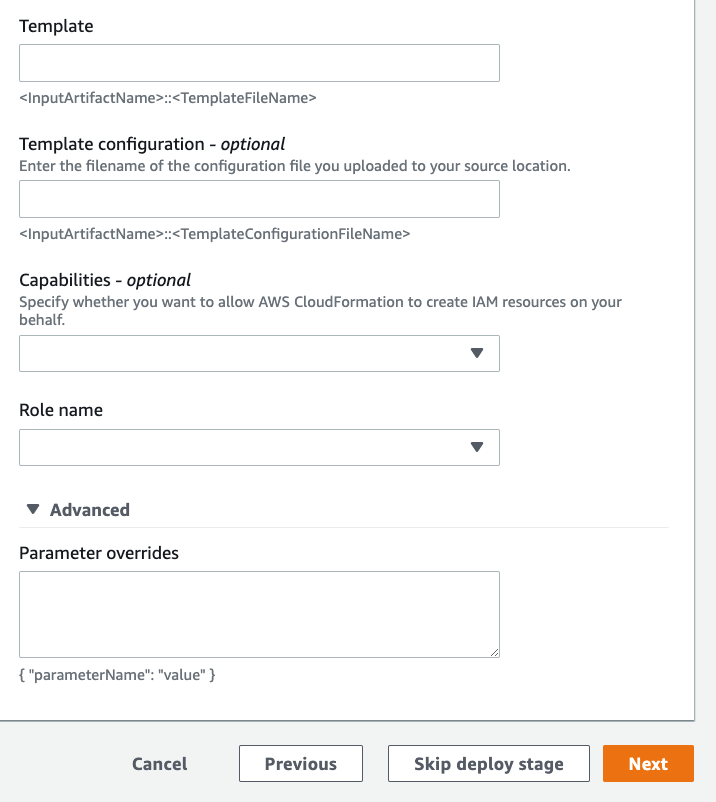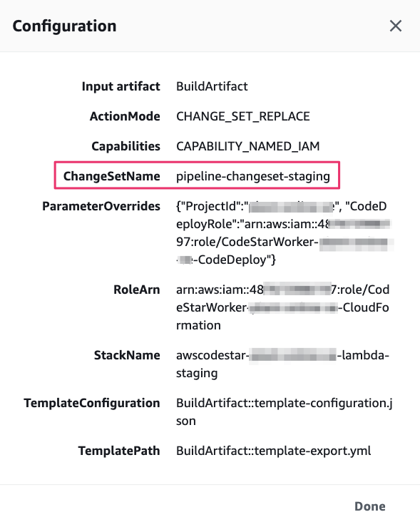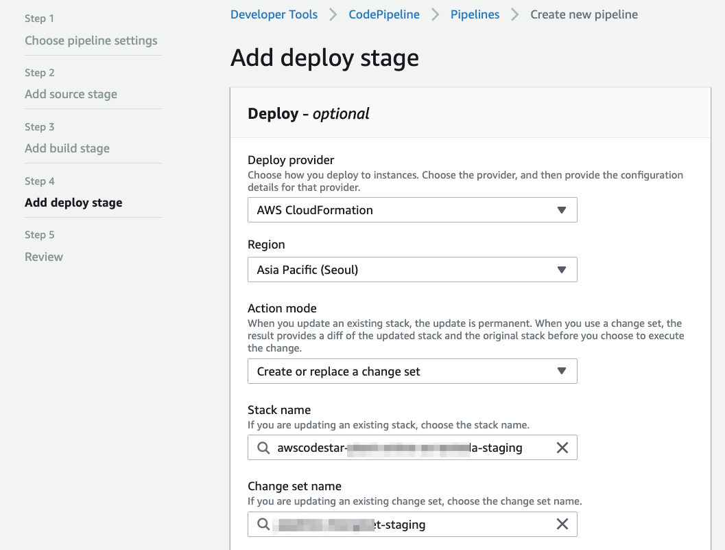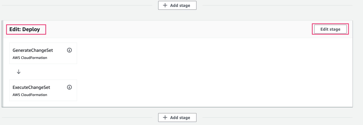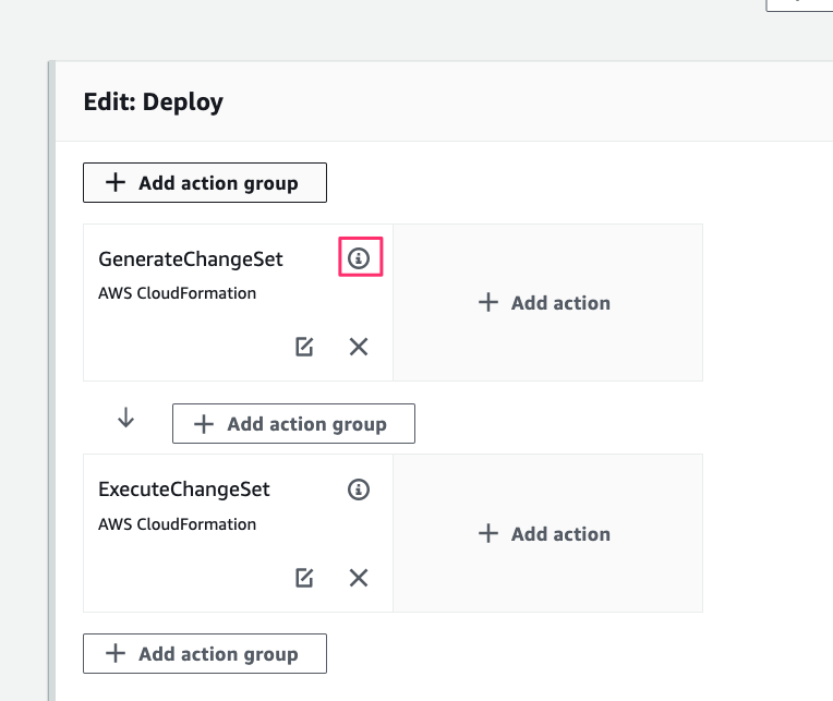 마지막으로 master 파이프라인과 동일하게 Deploy 스테이지의 GenerateChangeSet 아래에 있는 작업 그룹을 추가해야 한다.