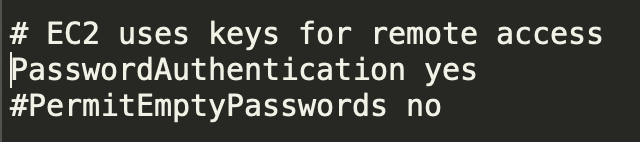 sshd_config 파일에서 PasswordAuthentication 값을 yes로 변경해주면 된다.