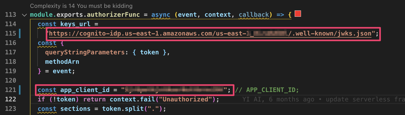 handler.js keys_url 중간에 cognito 'User pool id'를 입력해준다.