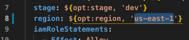 us-east-1에서 테스트를 할 것이기때문에 region 정보를 수정해준다.