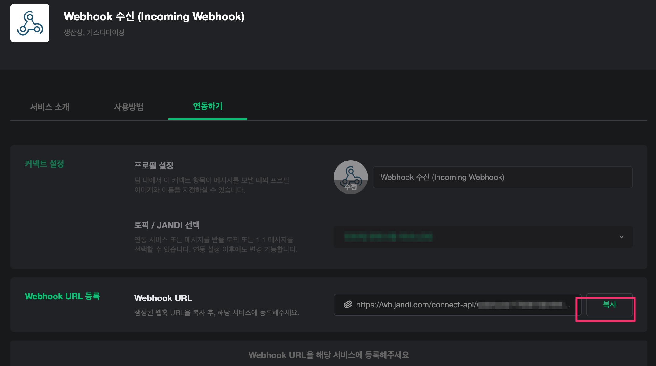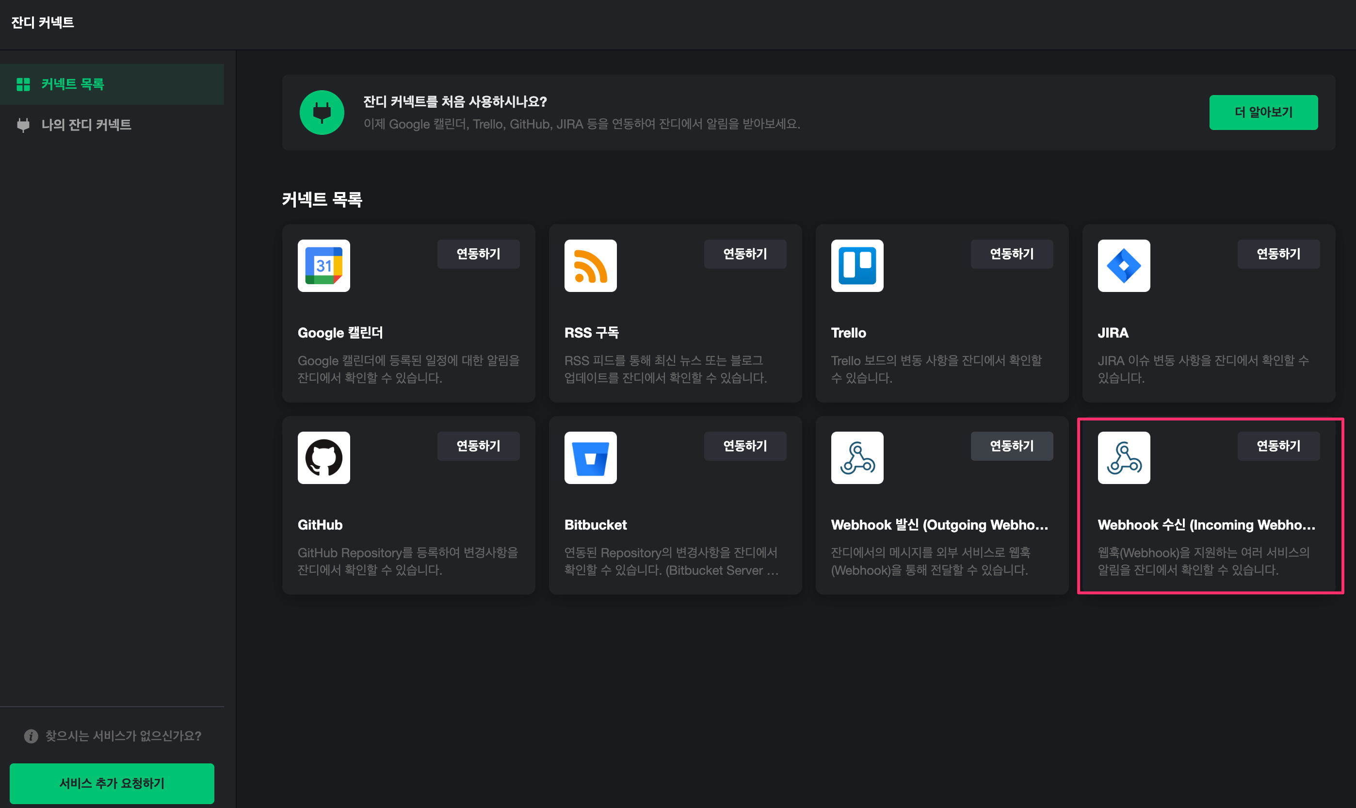 그래서 이슈 발생시 JANDI 메신저로 webhook을 날리도록 만들기로 했다.