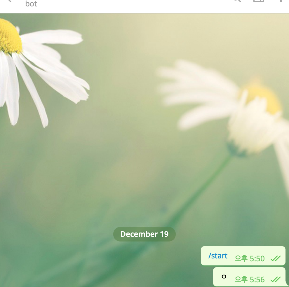 이제 텔레그램에서 봇에 말을 걸어보자. (아무말)